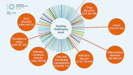 IMI is the world’s largest public-private partnership in health with a total budget of €5 billion – half from the European Union and half from the pharmaceutical industry, through EFPIA. IMI refers to two subsequent programmes: IMI1 under FP7 and IMI2 under Horizon 2020.