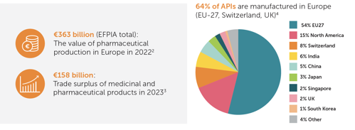 Europe, particularly the EU-27, stands as a prominent hub for the production of innovative medicines and active pharmaceutical ingredients. In 2023, it contributed to a trade surplus of 158 billion euros while continuously supplying patients.