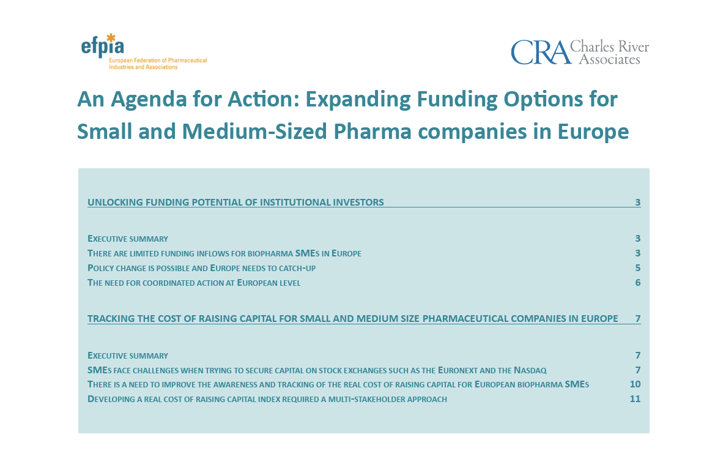 - EFPIA study on the access to finance and barriers to growth in the innovative biopharmaceuticals sector