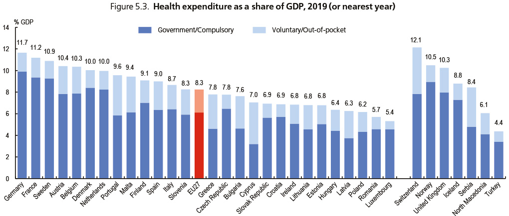 Source: OECD Health Statistics 2020; Eurostat Database; WHO Global Health Expenditure Database.