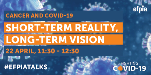 The EFPIA Oncology Platform is delighted to invite you to “Cancer and COVID-19 – short-term reality, long-term vision”, the first of a series of virtual events focusing on the impact of COVID-19 on cancer care, that will be held on 22 April from 11.30 to 12.30 CEST.
