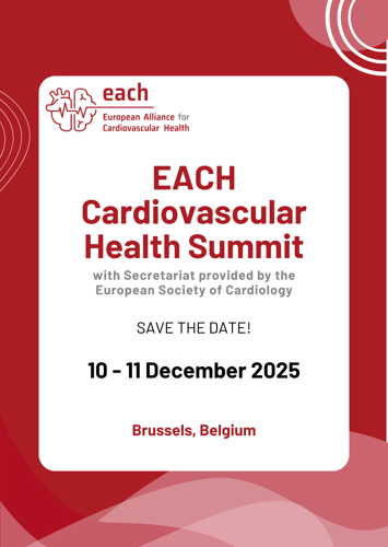 Save the date for the EACH Cardiovascular Health Summit, taking place on 10–11 December 2025 in Brussels.