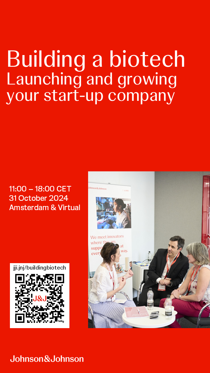 Interested in transforming your scientific innovation into a thriving biotech venture? If so, we encourage you to join the upcoming JLABS program "Building a biotech: Launching and growing your start-up company" on 31 October 2024, in Amsterdam or virtually.