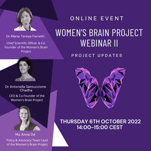 We are delighted to announce the forthcoming webinar of the Women’s Brain Project.