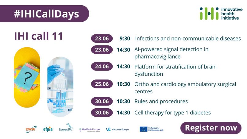 Join Innovative Health Initiative (IHI) for a full week dedicated to IHI Call 11, taking place online from 23 to 30 June 2025, where you will: