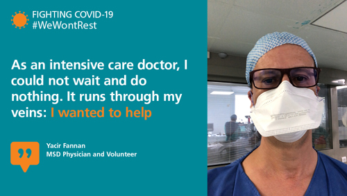 "We are currently experiencing a very special situation that raises many questions and sometimes concerns. As an intensive care doctor, I could not wait and do nothing, it runs through my veins, this is why I was trained: I wanted to help. In this respect, I also thank MSD for giving me the opportunity to help the health system and the patients on working days».