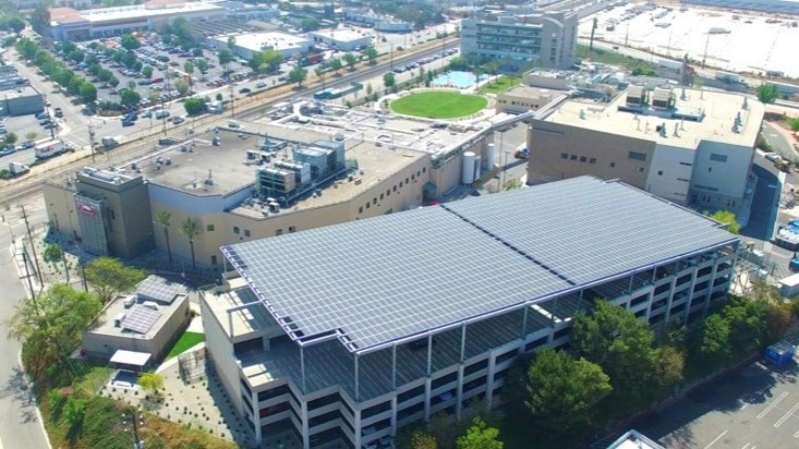 At the L.A. site 1,500 solar panels were installed on the parking lot structure. The system has a capacity of 578kW and can generate about one MWh of renewable electricity — or enough to power 700 U.S. homes for a year on average.