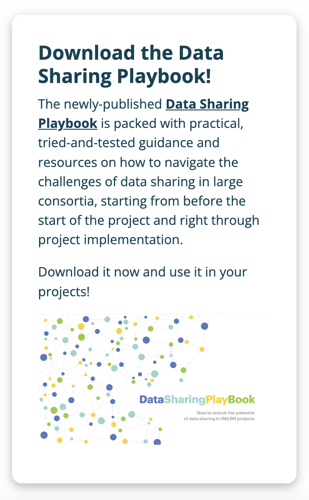 By shedding light on data sharing workflows and processes, identifying common roadblocks and proposing standardised solutions, the Playbook marks a turning point in unlocking the potential of data projects. It intends to be a user-friendly and comprehensive tool for all those involved in data sharing in IMI/IHI projects.