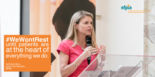 From designing clinical trials to developing patient reported outcome measures, EFPIA members are engaging patients in the decision making process. Underlining their commitment, you can see a series of #WeWontRest pledges from Board members of EFPIA to put patients at the heart of what we do.