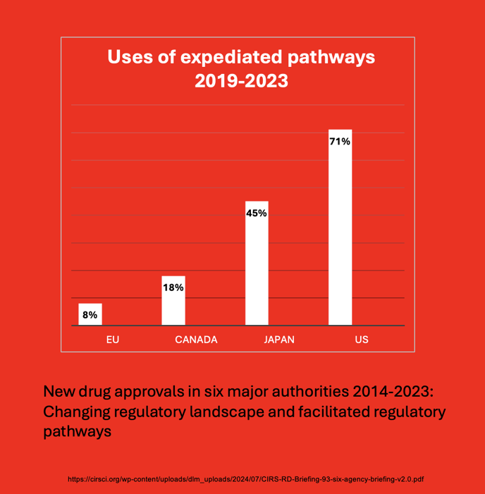 Japan assessed its regulatory framework following a significant decline in approvals of medicines. In 2023, 143 new medicines were not available to Japanese patients with no plans for 60% of them to be developed for the market[vi]. The phenomenon of "drug loss," where approved drugs in major markets are not developed in Japan[vii], underscores the negative impact regulations can have on patients access to innovative treatments especially for smaller biotech companies. Japan’s Pharmaceuticals and Medical Devices Agency now promotes its reformed regulatory systems, including an enhanced innovative drug designation program that provides priority reviews and a conditional approval system that allows for early access in instances where conducting confirmatory clinical studies is challenging [vii].