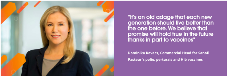 “It’s an old adage that each new generation should live better than the one before. We believe that promise will hold true in the future thanks in part to vaccines,” added Dominika Kovacs, commercial head for Sanofi Pasteur’s polio, pertussis and Hib vaccines. “Sanofi is looking at ways to support increased global access to existing vaccines while pioneering new ones for people at all ages of life at risk of catching existing and emerging infectious diseases.