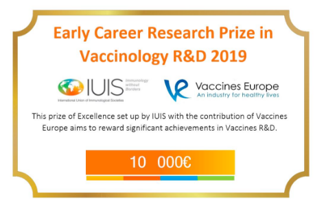 The Early Career Research Prize in Vaccinology R&D is awarded by the International Union of Immunological Societies (IUIS) with the contribution of Vaccines Europe. The objective is to promote and foster a younger generation of scientists in the early stages of their career.