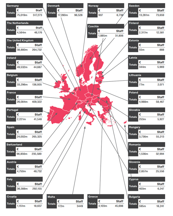 It shows a ‘strong and growing’ industry which contributed a total of €311bn[1] to the EU-27 economy in 2022.