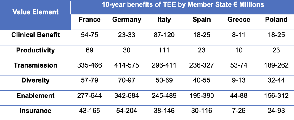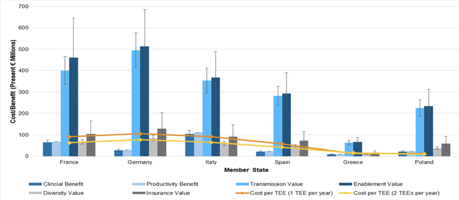 The cost/benefit analysis by Charles River Associates for EFPIA demonstrates the potential benefits – clinical and economic – and allays fears that TEE would prove expensive to Member States. In fact, the research shows that it would save individual countries hundreds of millions of Euros and provide a long-term, sustainable solution to revitalise the antibiotic pipeline.